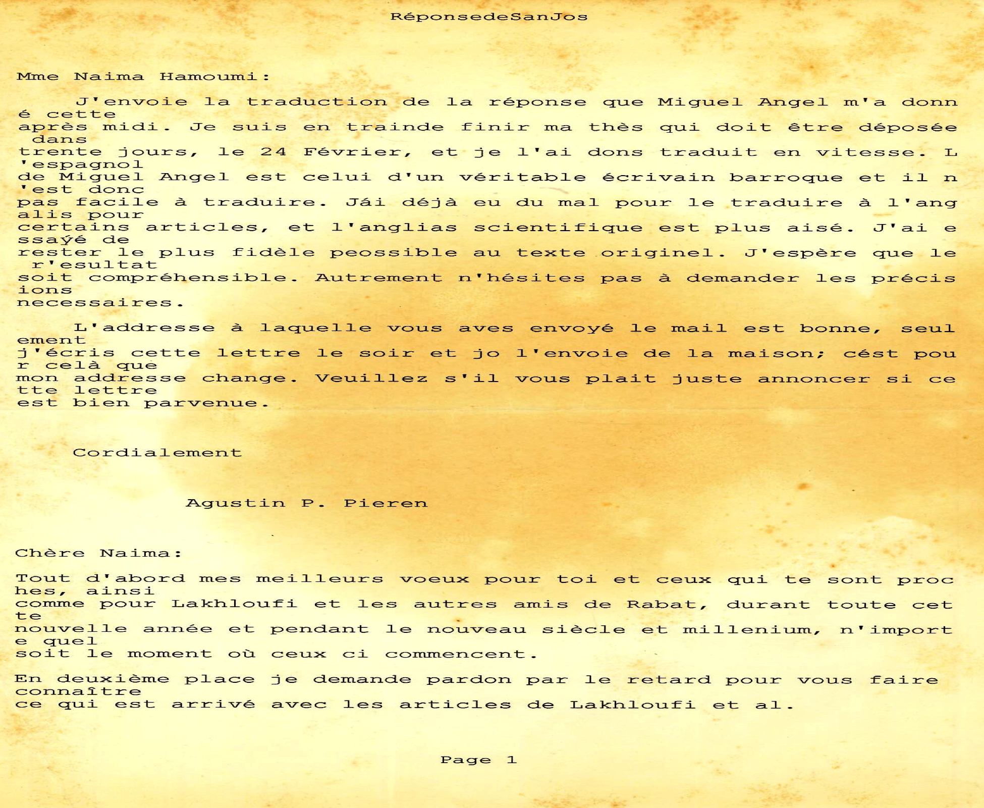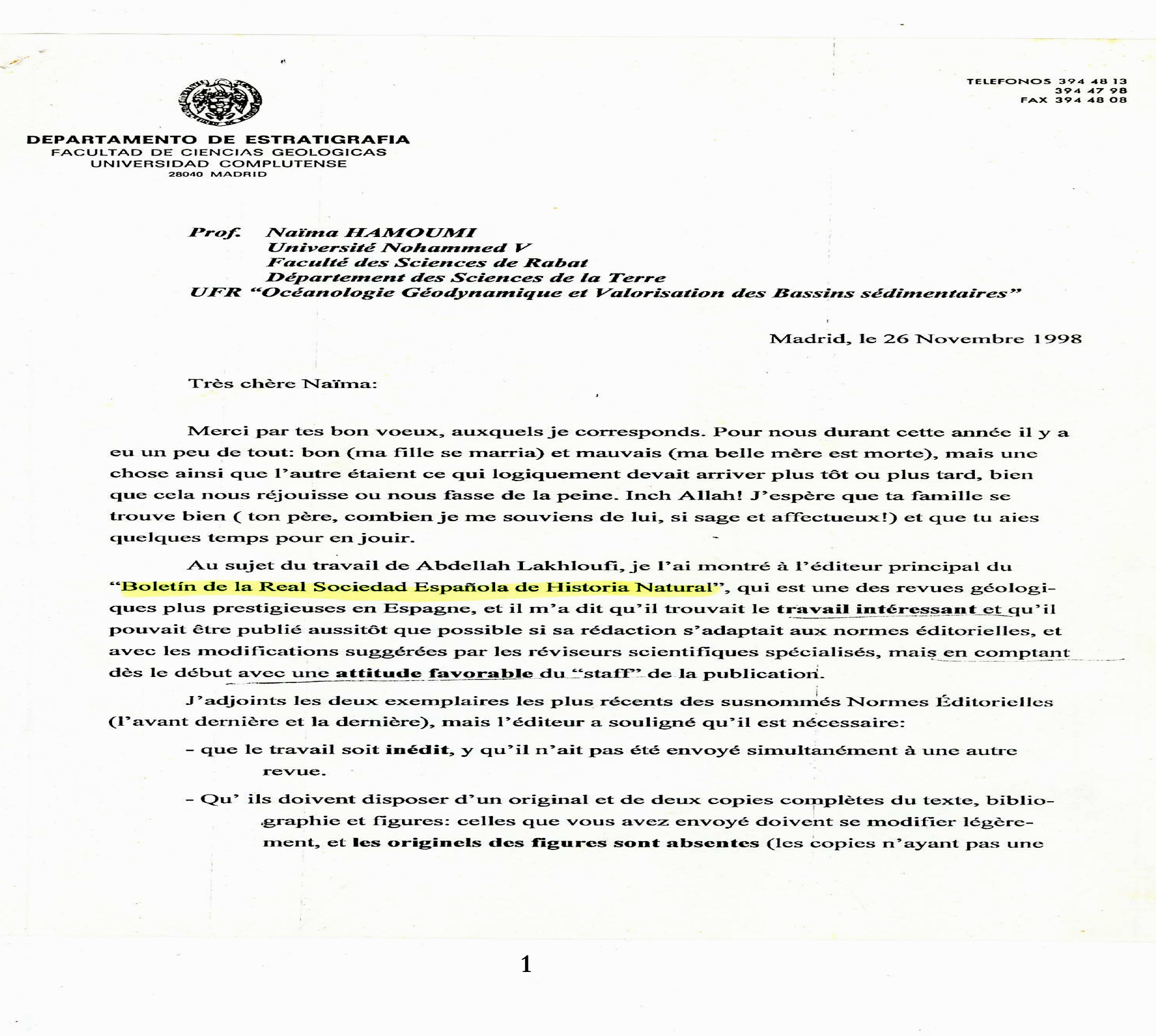 Voilà donc, j’ai décidé de partager avec la communauté scientifique les résultats de mes travaux de recherches dans le NW de la Meseta occidentale, zone clé de l’hercynien marocain pour toute fin, scientifique, utile; données scientifiques originales. Comme j’ai partagé avec vous, aussi, ce qui est de la déontologique des scientifiques, qui a été sérieusement bafouée par ceux qui devaient l’honorer. Qu’en pensez-vous ? A vous la balle, à vous de jouer… Je pense qu’il faut lutter contre le « racisme scientifique », comme l’a écrit le Professeur Miguel Angel de San José, dans sa lettre (ci-jointe).