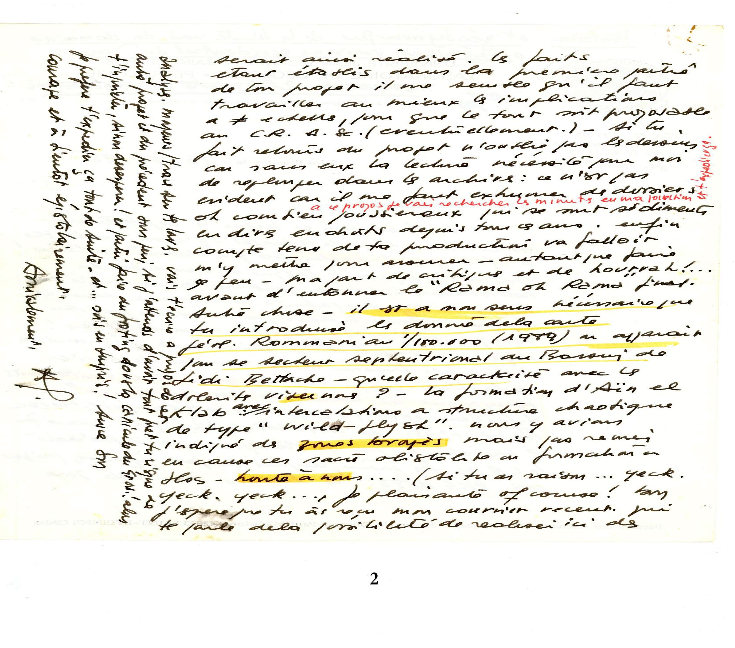 A propos de l’existence d’un chaos rocheux de nature tectonique, dans une zone de cisaillement majeure et non d’une formation chaotique d’âge famenno-tournaisien, le Professeur Henri Gonord (mon encadrant en thèse de troisième cycle) m’avait écrit (lettre du 19/6/1996 ; cf. ci-joint): « …honte à nous qui n’avions pas su voir que ce « wild flysch » n’en était pas… ». Dans un autre paragraphe, de la même lettre, il a écrit : « La Formation d’Aïn el Klab avec intercalations à structure chaotique de type « wildflysch ». Nous y avons indiqué des zones broyées mais pas remis en cause ces sacrés olistolites ou formation à blocs – honte à nous…
