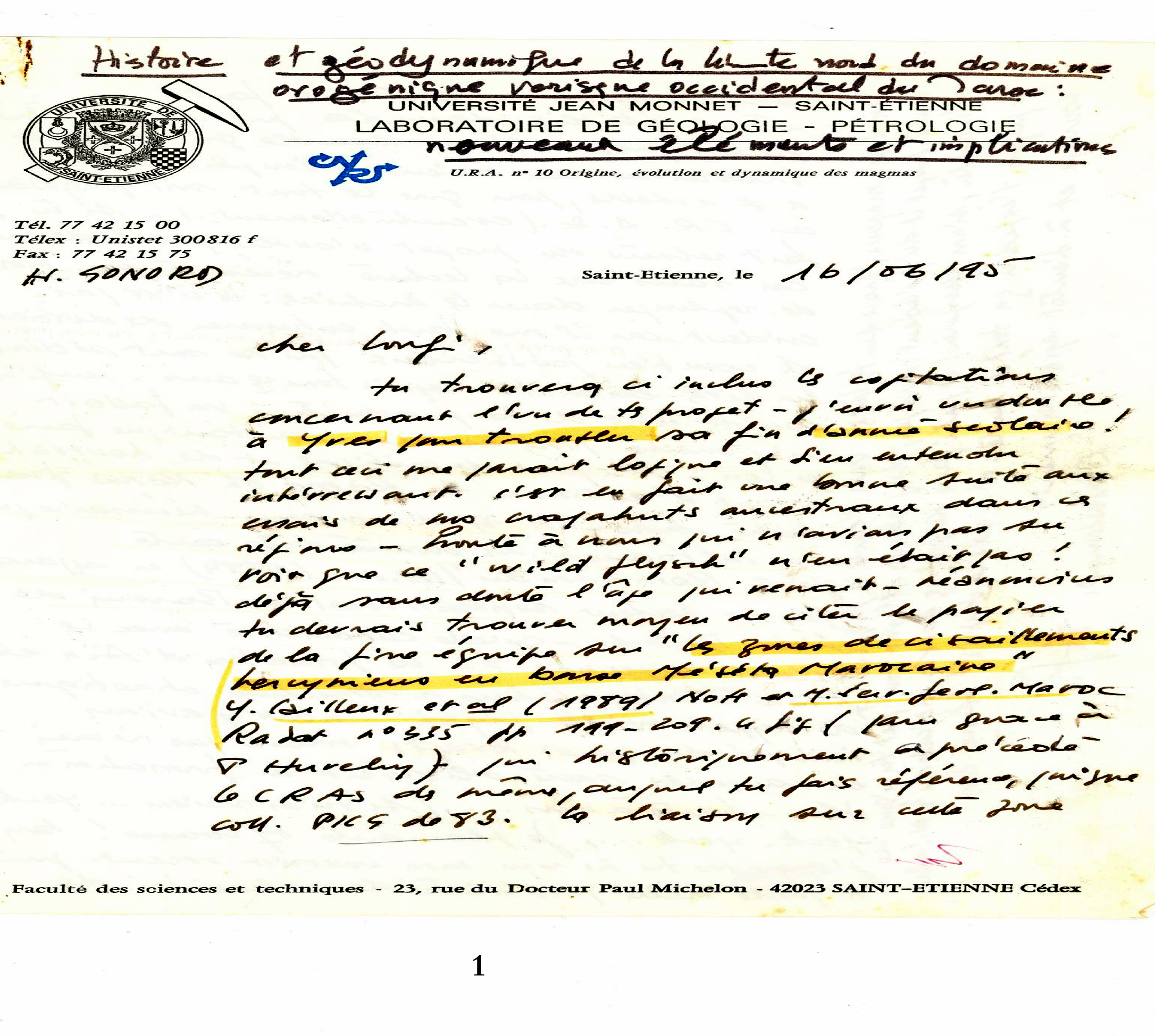 Oui, c’est l’histoire de l’amour propre qui est entré en jeu !!! A dieu, donc, la science. Qui es-tu, toi qui ose démolir les édifices des grands maîtres ? Bien qu’il s’agisse de la science. Je n’ai pas cherché à démolir leur édifice en construisant le mien. D’ailleurs, j’étais ouvert sur tout le monde, je leur tendais la main, mais en vain. Je n’avais aucun complexe à ce que le Professeur Michard, par exemple, soit le premier auteur d’un article, par exemple celui concernant la Zone de Cisaillement Nord Mesetienne ; d’ailleurs c’est pour cela que j’ai lui envoyé la thèse en proposant une révision des données concernant le domaine hercynien marocain (cf. ci-dessus). Il y a aussi le Prof. Christian Hoepffner, de la Faculté de Sciences de l’Université Mohamed V de Rabat, à qui j’ai tendu la main, en lui proposant d’être le directeur de ma thèse d’Etat et, j’ai lui proposé un terrain dans l’extrême Est du Maroc, dans la région de Talsint – Bou Arfa – Figuig, loin des régions où ils ne veulent pas m’y voir travailler (loin de la Meseta nord occidentale où ma thèse de troisième cycle a constitué une tache d’huile où les nouvelles données vont s’étaler à l’ensemble du domaine hercynien NW mesetien), mais il a esquivé, diplomatiquement, ma demande. Sans parler, notamment, des Professeurs Tahiri et El Hassani de l’Institut Scientifique et du feu Prof. Fadli et le Prof. Zahraoui de la Faculté des Sciences… Ils n’ont jamais voulu me parler directement et franchement, ils me faisaient passer leurs« requêtes » via Yves Cailleux (avant qu’il parte en France) et, quand je voulais leur parler directement, à ce propos, Mr Tahiri, par exemple, trouvais toujours une façon de me dire qu’il n’y a aucun problème avec moi… pas de problèmes entre nous les marocains.